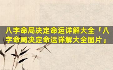 1、八字命局决定 🌹 命运详解大全