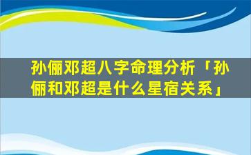 整体来看,孙,俪和邓超的八字命理相合姻缘运势较好。两,人,性。格互补事业发 🐺 展相辅相成有 🌷 利于家庭和睦和事业成功