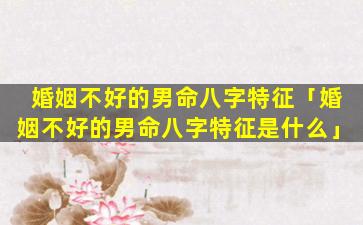 婚姻不 🌲 佳 🦍 的男命八字特征