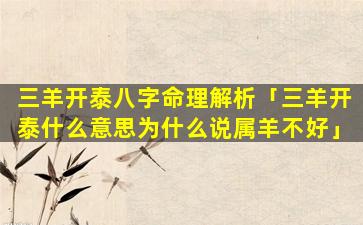 什么是 🌲 “三羊开 🐒 泰”命 🍀 格?