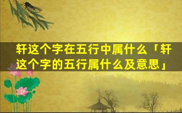 1、轩这个 🐯 字在五行 🦋 中属什么