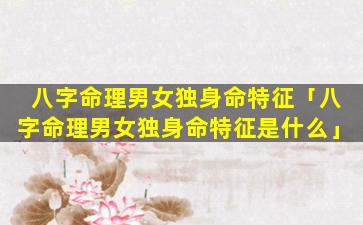 2、八字命理男女独身命特征是 🦅 什 🪴 么