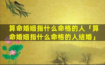 1、算命婚姻指 💐 什么命 🌾 格的人