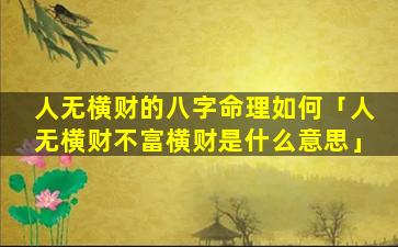 3、人无横财的八字命理如何 🦆 解释