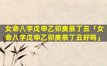 2、女命八字戊申 🦅 乙卯庚辰丁丑好吗