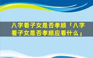 2、八字看子女 🐯 是否孝顺应看什么
