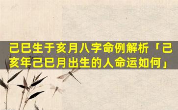 3、己巳 🐘 生于亥月八字命例解析大 🦈 全