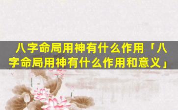 2、八字命局用神有什么 🕸 作 🌺 用和意义