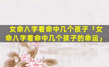 3、女命 🦈 八字看命中几个孩子 🦍 好