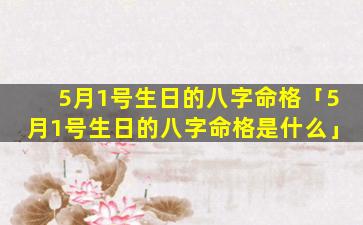 3、5月1号生日的八字 🐕 命格怎 🌼 么样