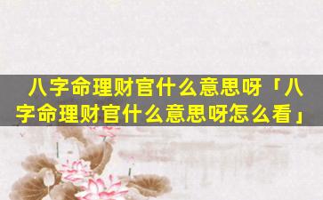 2、八字命理财官什么意思 🍁 呀怎 🦢 么看