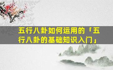 五行八卦的 💐 作 🌼 用方 🐴 法