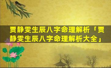 2、贾静雯生 🐕 辰八字命理解析大 🍁 全