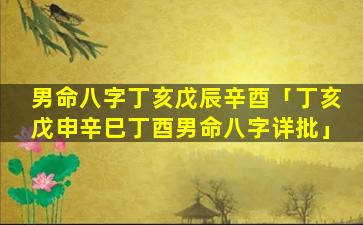 3、男命八字丁亥戊 🍀 辰辛酉好不好