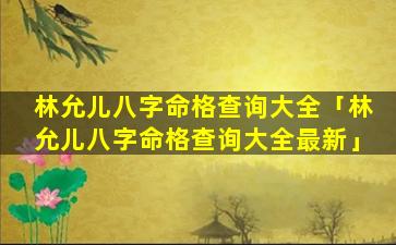 1、林允儿八 🕊 字命格查询 🐒 大全