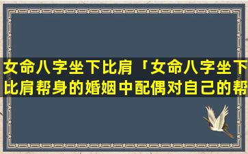 女命八字坐下 🐵 比肩帮身,婚姻中 🐠 配偶对自己 🌸 的帮助