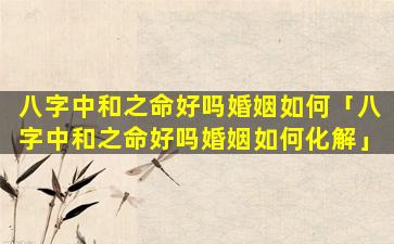 八字中和之 🕊 命婚姻如 🐝 何看 🐠 ?