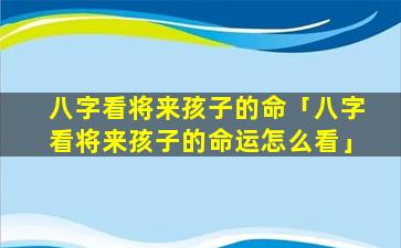 八字看将 🐳 来 🌳 孩子的命运方 ☘ 法