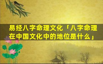 2、八字命 🐧 理在中国文化 🦋 中的地位是什么?