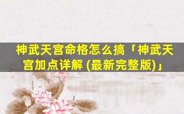 神 🦁 武天 🌴 宫加点详解(最新完整版)