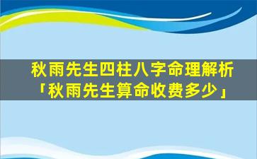 2、秋 🐧 雨先生算命收费多少 🐧 ?