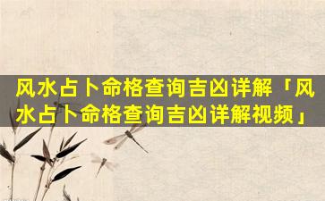 1、风 🌷 水占卜命格查询吉凶 🌼 详解