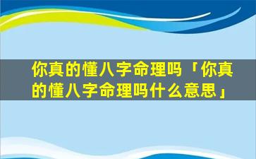 “你真的懂八字命理吗”这句话的含义有多种,可能表示 🍀 :