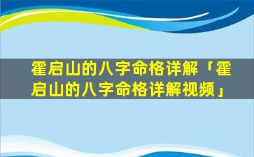 3、霍启 🐈 山的八字命格详解大全 🐡