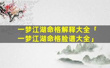 一 🌾 梦江湖命 🌺 格解释 🦉 大全