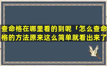 2、怎么查命格的方 🌳 法原来这么简单就看 🐝 出来了