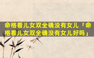 2、命格看儿女双全 🌳 确没有 🐘 女儿好吗