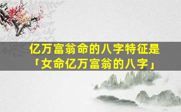 女性億萬富翁的八字並無固定模式,上述特徵 🌼 僅為流傳於民 🐱 間的說法。