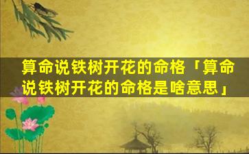 根据民间传说,“铁树开花”被,视“为”极其罕见和吉祥的事件因此衍 🐈 生出算命说铁 🌷 树开花的命格的说法。