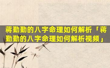 2、蒋勤勤 🦍 的八字命理如何解析视频