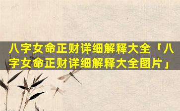 八字女命正 🌺 财 ☘ 详细解释大全 🐒 图
