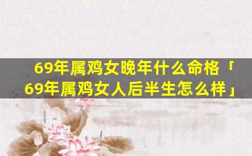 2、69年属鸡 🐧 女人后半生怎 🐼 么样