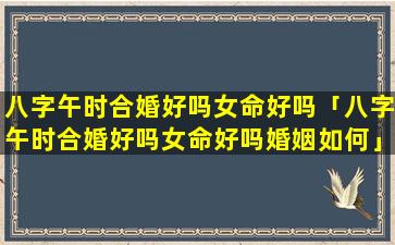 2、八字午时合婚好吗 🐋 女命好吗婚姻如何