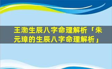 朱元璋 🌲 的 💮 生辰八字 🐱