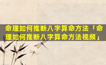 2、命理如何推 🦢 断八字算命 🦅 方法视频