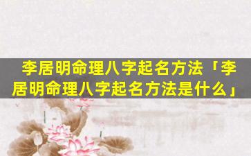 李居明命 🦄 理八字起名 🐎 方法