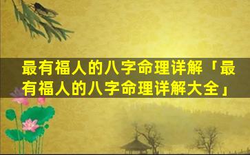 最有福人的八字 🐺 命理详解