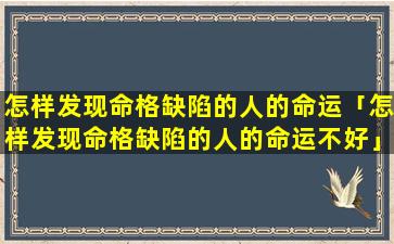 2、怎样 🌸 发现命格缺陷的人的命运不好