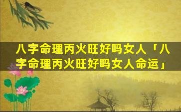 1、八字 🪴 命 🐅 理丙火旺好吗女人