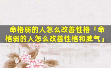 1、命格弱 🍁 的人怎么 🕸 改善性格