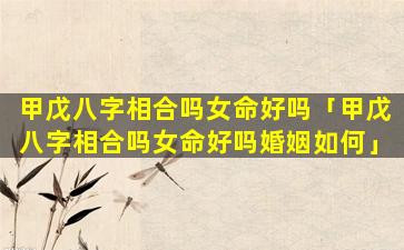 2、甲戊八字相合吗女命好 🌳 吗婚姻如何