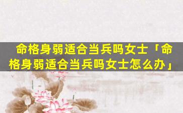 命 🦅 格身弱适 🦆 合当兵吗 💐 ?