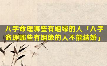 3、八字命理哪些有 🍁 姻 🌹 缘的人好
