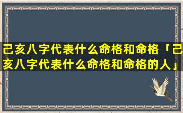 1、己亥八字代表 🪴 什 🌼 么命格和命格