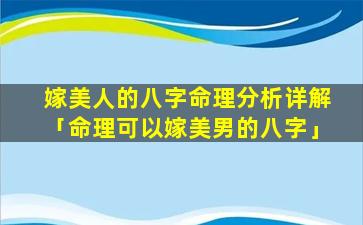 1、嫁美人 🐎 的八字命 🌵 理分析详解