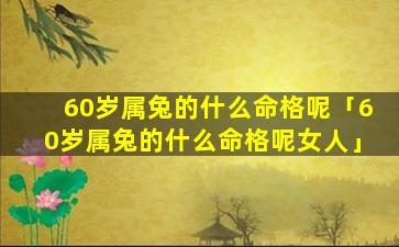 1、60岁属 🐱 兔的什么命格呢 🐒